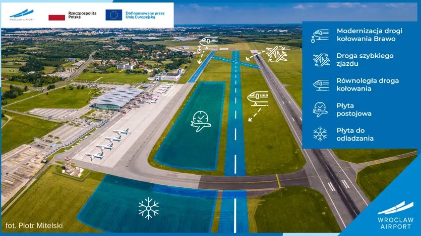Dzięki środkom unijnym pozyskanym w ramach programu Military Mobility (łącznie 350 mln zł dofinansowania), Port Lotniczy we Wrocławiu jeszcze w tym roku rozpocznie rozbudowę. W ramach przetargu do 14 listopada firmy mogą zgłaszać swoje oferty. Wyłoniony wykonawca będzie miał 26 miesięcy na wykonanie zadania, licząc od dnia podpisania umowy.