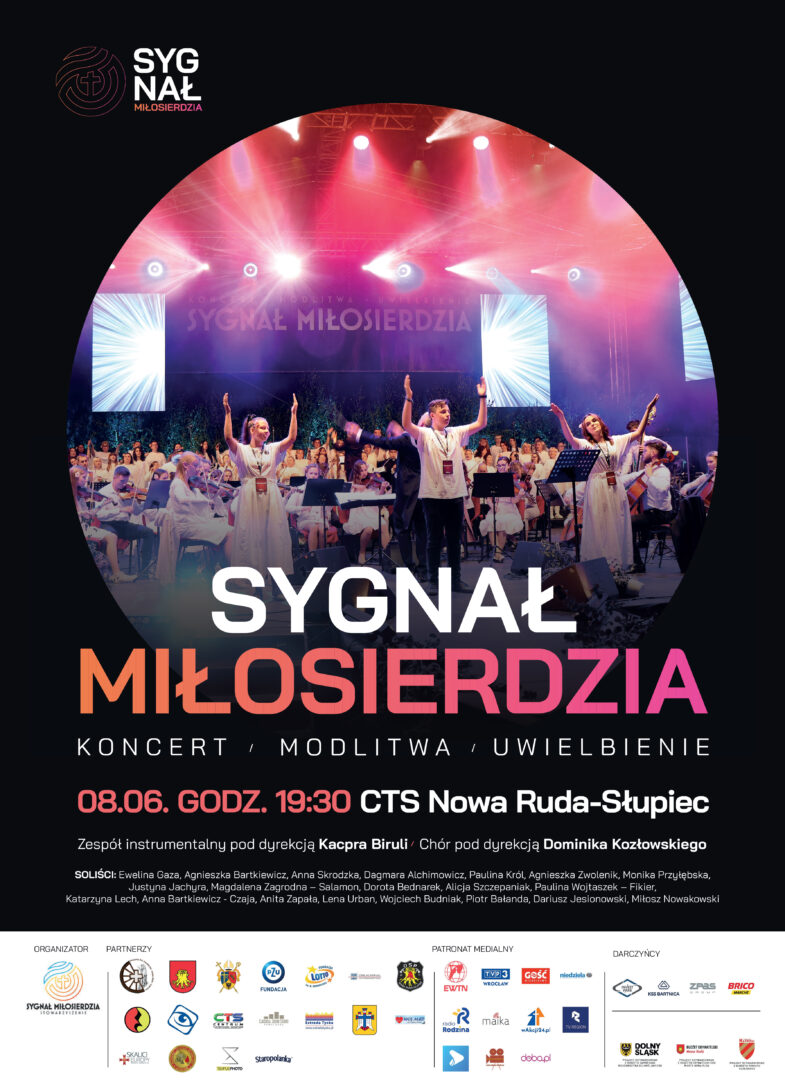Sygnał Miłosierdzia to niezapomniana duchowa podróż poprzez piękno muzyki  chrześcijańskiej. To wyjątkowy koncert plenerowy odbywający się w uroczystość Bożego  Ciała w Nowej Rudzie-Słupcu. Wydarzenie jest przepełnione modlitwą, uwielbieniem i  pozytywną energią, które poprzez muzykę pozwolą Ci doświadczyć Bożej obecności w  atmosferze pełnej nadziei i miłości. Poprzez to wydarzenie wspierana jest wspólnota chrześcijańska, która pomimo wszelkich trudności społecznych posiada w sobie pasję, energię i radość.