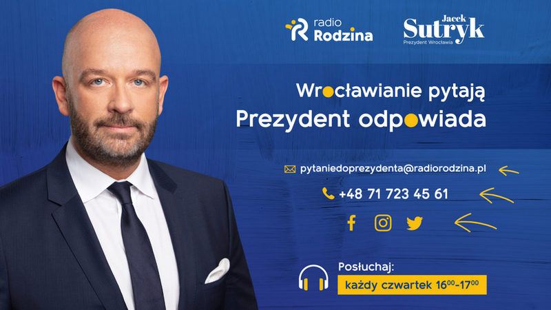 Audycja „Wrocławianie pytają, Prezydent odpowiada” w czwartki po godz. 16:00. Zachęcamy do zadawania pytań, zgłoszeń pod adresem pytaniedoprezydenta@radiorodzina.pl oraz pod numerem telefonu 71 7234561.