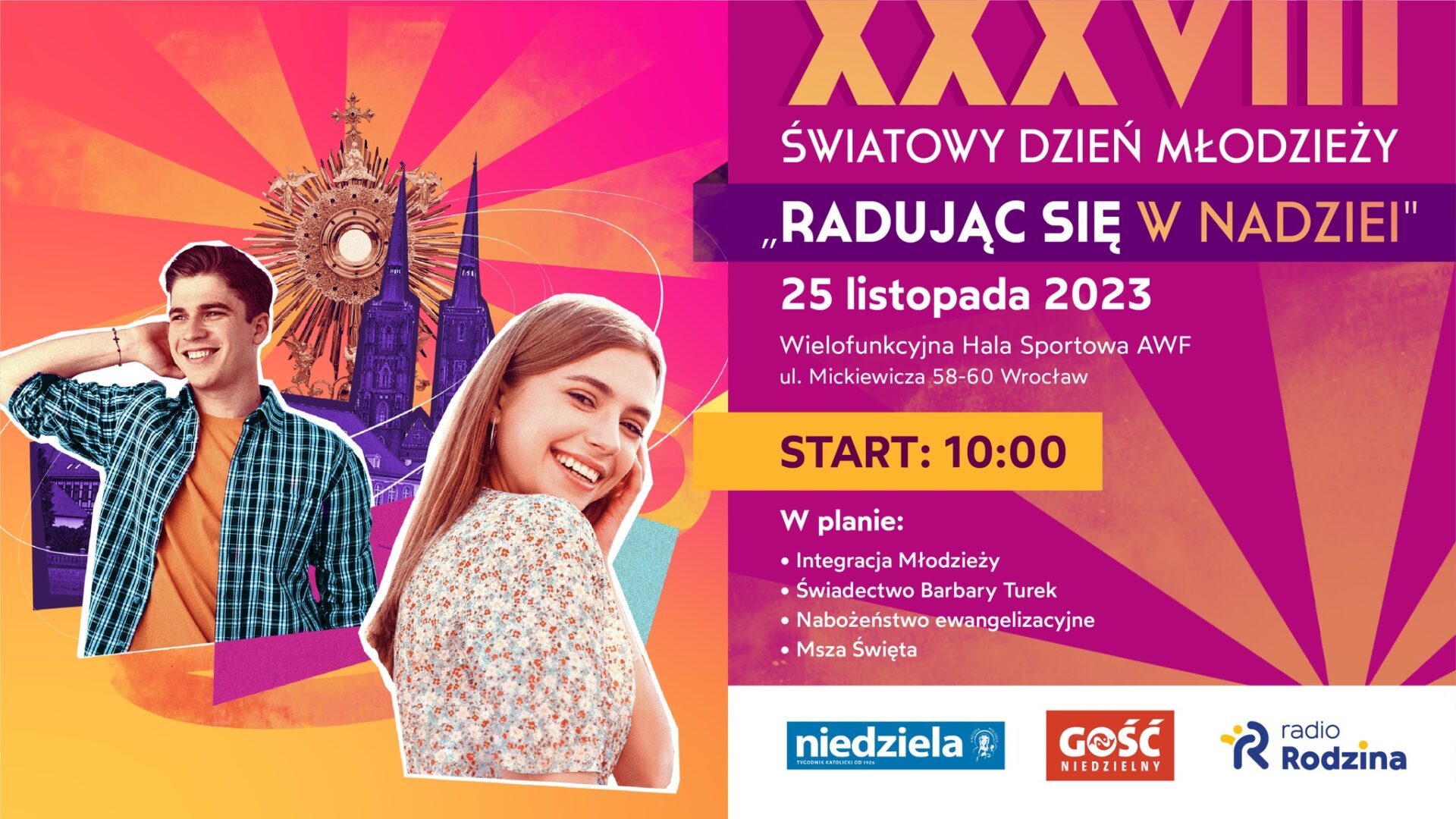 Do 15 listopada trwają zapisy na XXXVIII Światowy Dzień Młodzieży, który odbędzie się w hali wielofunkcyjnej AWF we Wrocławiu. W tym roku hasłem przewodnim obchodów jest zawołanie „Radując się w nadziei”.