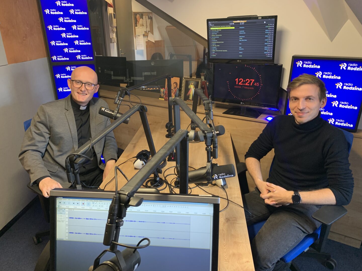 W naszym studiu ks. Piotr Rozpędowski – diecezjalny duszpasterz młodzieży oraz Mikołaj Wilgosz – koordynator grupy muzycznej.