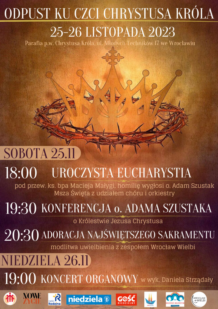 25 listopada w wigilię uroczystości Chrystusa Króla, odbędą się dwa wydarzenia. Spotkanie młodzieży diecezji wrocławskiej o charakterze integracyjno-powołaniowym oraz odpust w Parafii pw. Chrystusa Króla we Wrocławiu.