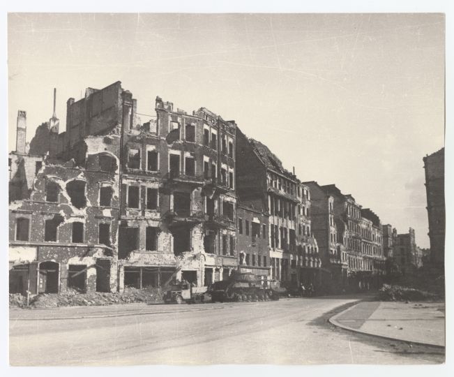 Powyżej: Zniszczenia powojenne we Wrocławiu, ul. Legnicka (okolice pl. Strzegomskiego). Fot. Krystyna Gorazdowska, 1945 (źródło: Muzeum Architektury we Wrocławiu).