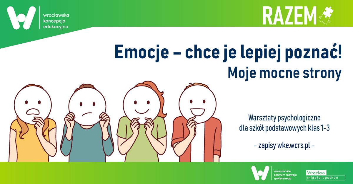 Rusza kolejna edycja warsztatów psychologicznych dla dzieci ze szkół podstawowych, z klas 1-3. Są to dwie propozycje, pt.: ,,Emocje – chcę je poznać!” oraz ,,Moje mocne strony”.
