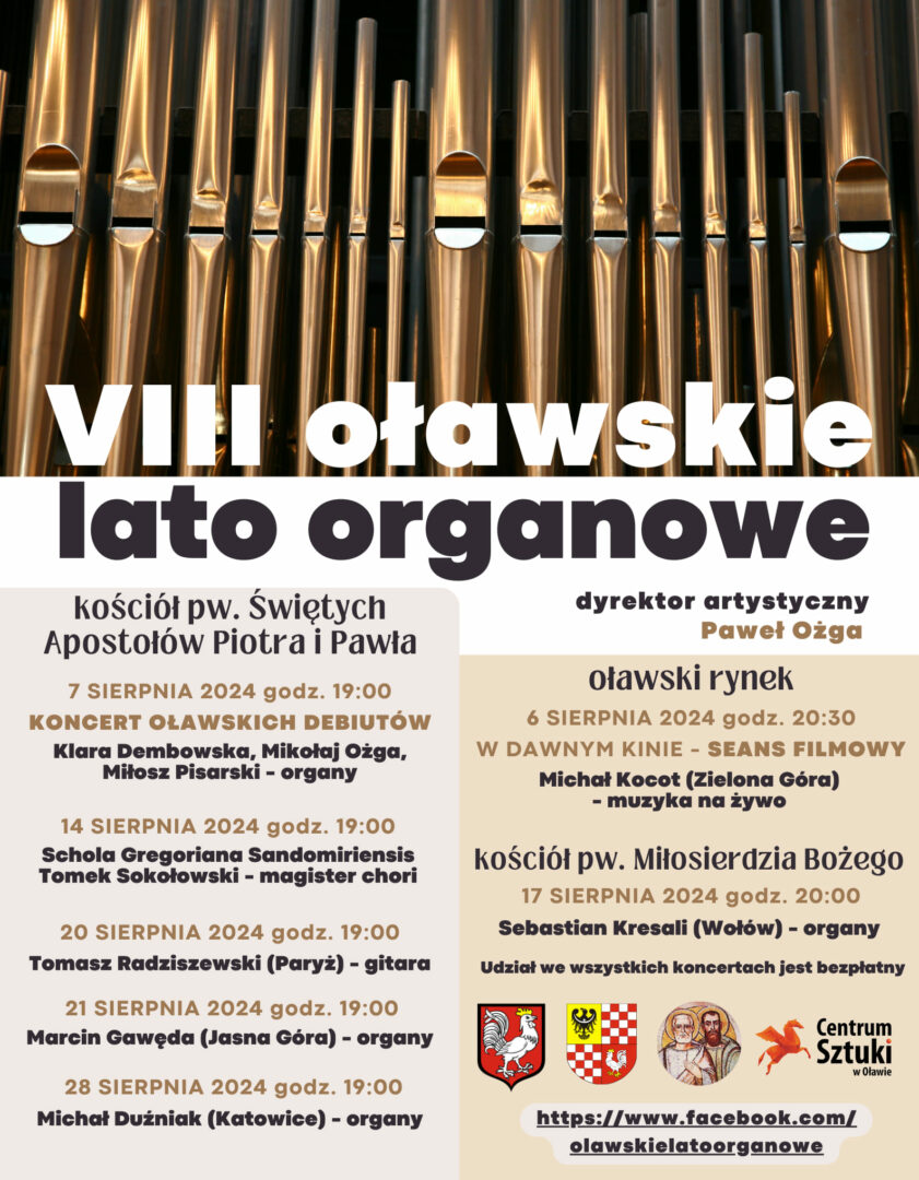 Formułę wydarzenia, dzięki współpracy i przychylności współorganizatorów, udało się rozszerzyć. Poza koncertami w kościele św. Apostołów, odbędzie się koncert inauguracyjny na oławskim rynku z udziałem muzyki na żywo (6.08), a także występ organisty Sebastiana Kresali w parafii pw. Miłosierdzia Bożego w Oławie (17.08).