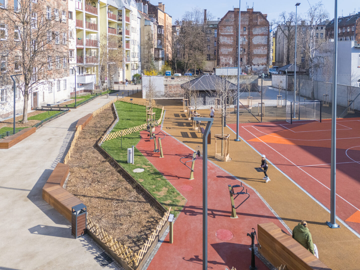 Każdy remont sprawia, że z podwórka korzysta się przyjemniej. Kładzione są lepsze nawierzchnie, wyznaczane są miejsca postojowe, modernizuje się miejsca zbiórki odpadów, stawia nowe latarnie. Równie ważne jest przywrócenie podwórkom funkcji rekreacyjnych poprzez nowe place zabaw i małą architekturę do wypoczynku. Oprócz tego pojawiają się boiska i siłownie plenerowe. Miasto sadzi na podwórkach rośliny, aby mieszkańcom nie zabrakło zieleni umilającej życie i pozytywnie wpływającej na środowisko.