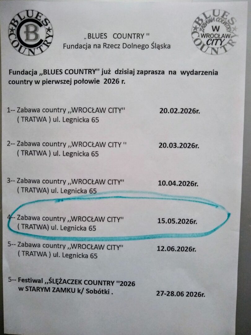 Dziś w audycji goście opowiedzą swoją historię i zaproszą na pełen atrakcji Festiwal Ślężaczek, który odbędzie się 27-28 czerwca w Starym Zamku koło Sobótki, wstęp wolny. Opowiedzą także o comiesięcznych Zabawach Country w ramach „WROCŁAW CITY” w Tratwie przy ul. Legnickiej 65 we Wrocławiu oraz o Senioralnym Przeglądzie Tańców Country TACAN zaplanowanym na jesień (26 września 2026).