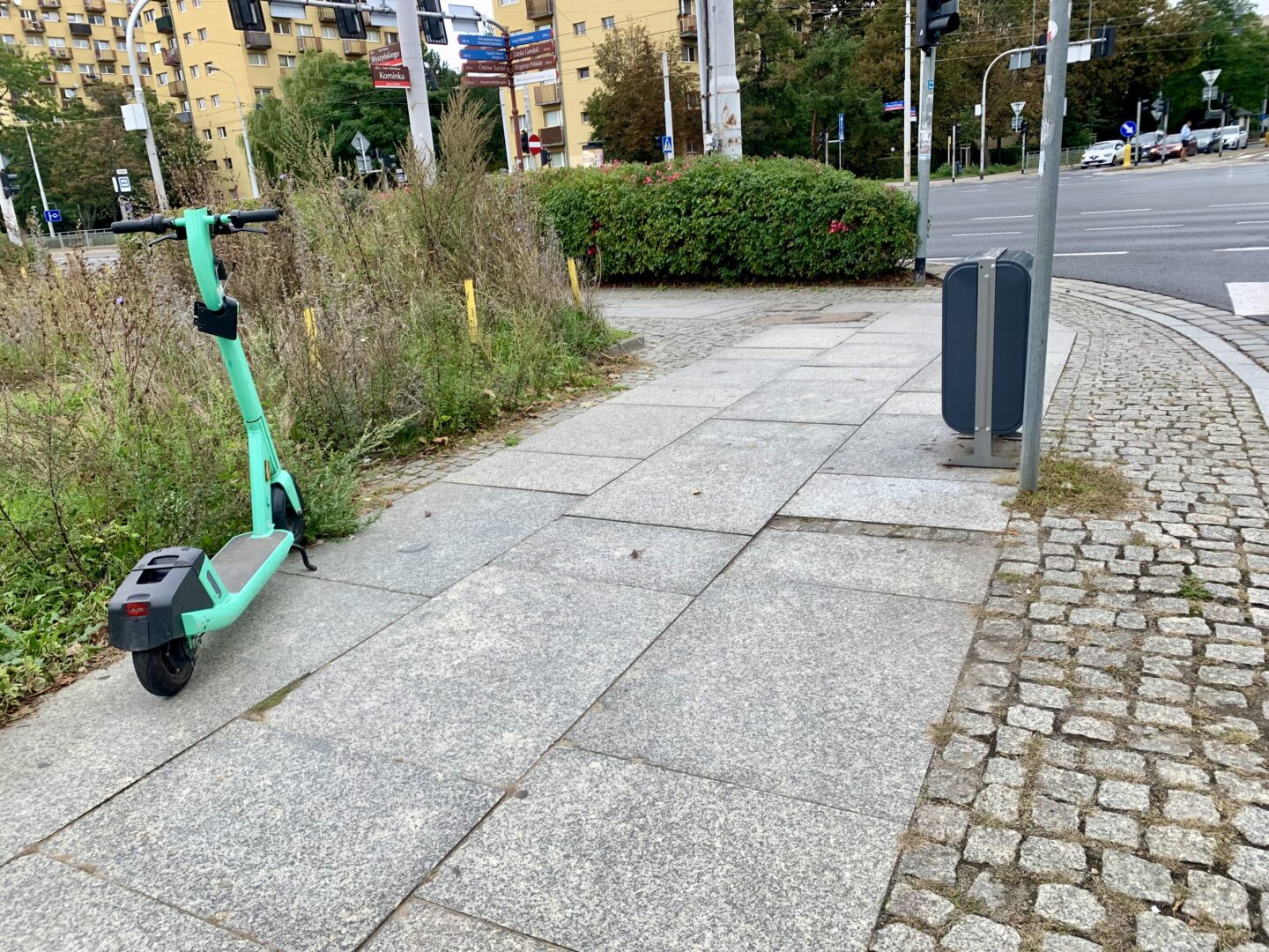 Dopuszcza się postój hulajnogi elektrycznej na chodniku w miejscu do tego przeznaczonym, a w razie braku takiego miejsca jak najbliżej zewnętrznej krawędzi chodnika najbardziej oddalonej od jezdni oraz równolegle do tej krawędzi, przy zachowaniu wymogu, że szerokość chodnika pozostawionego dla pieszych jest taka, że nie utrudni im ruchu i jest nie mniejsza niż 1,5 m – przypomina Straż Miejska.