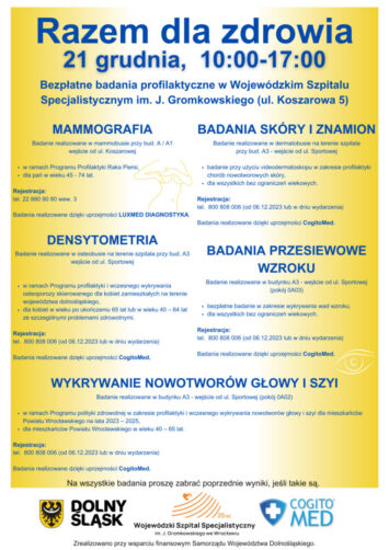Bezpłatne badania profilaktyczne w szpitalu przy ul. Koszarowej