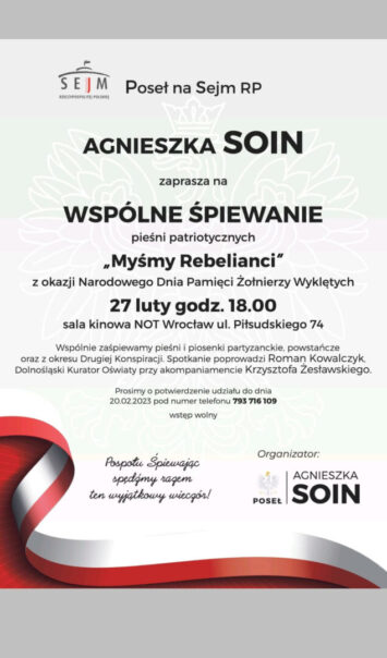 Home » Z okazji Narodowego Dnia Pamięci Żołnierzy Wyklętych we Wrocławiu 27 lutego odbędzie się wspólne śpiewanie pieśni patriotycznych pod hasłem "Myśmy Rebelianci".